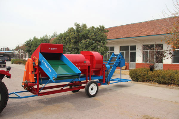 花生摘果機包括簡單的手搖花生摘果機、與發動機配套的花生摘果機、拖拉機配套的摘果機和電動機配套的摘果機。花生摘果機的結構比較簡單.其主要工作部件一般由彈齒滾筒、滾筒篩、固定彈齒、風扇等組成。無論配套什么動力,其工作原理都是相同的,均采用蓖梳式摘果原理。